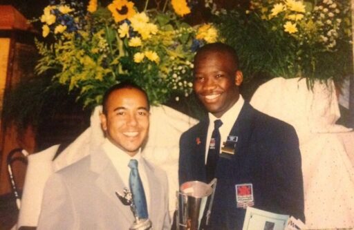 Photos below: Lungelo Hopa in his matric year at Simon’s Town School and pictured with cricketer, Paul Adams.